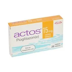 Actos, generically known as pioglitazone, is a thiazolidinedione medication used to manage type 2 diabetes. Available in 15 mg, 30 mg, and 45 mg tablets, it enhances insulin sensitivity to help regulate blood sugar effectively.