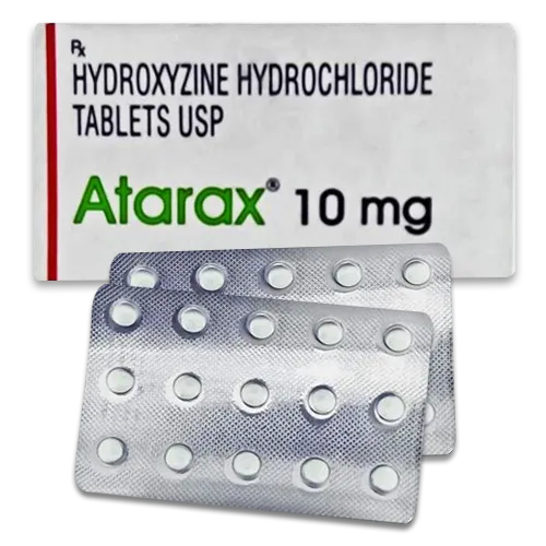 Atarax (hydroxyzine) is a versatile antihistamine with sedative and anxiolytic properties, used to treat allergic reactions, anxiety, and insomnia. Available in tablets, capsules, and liquid forms, it reduces symptoms by calming central nervous system activity, improving comfort and quality of life.